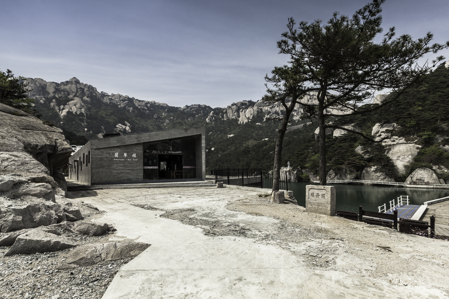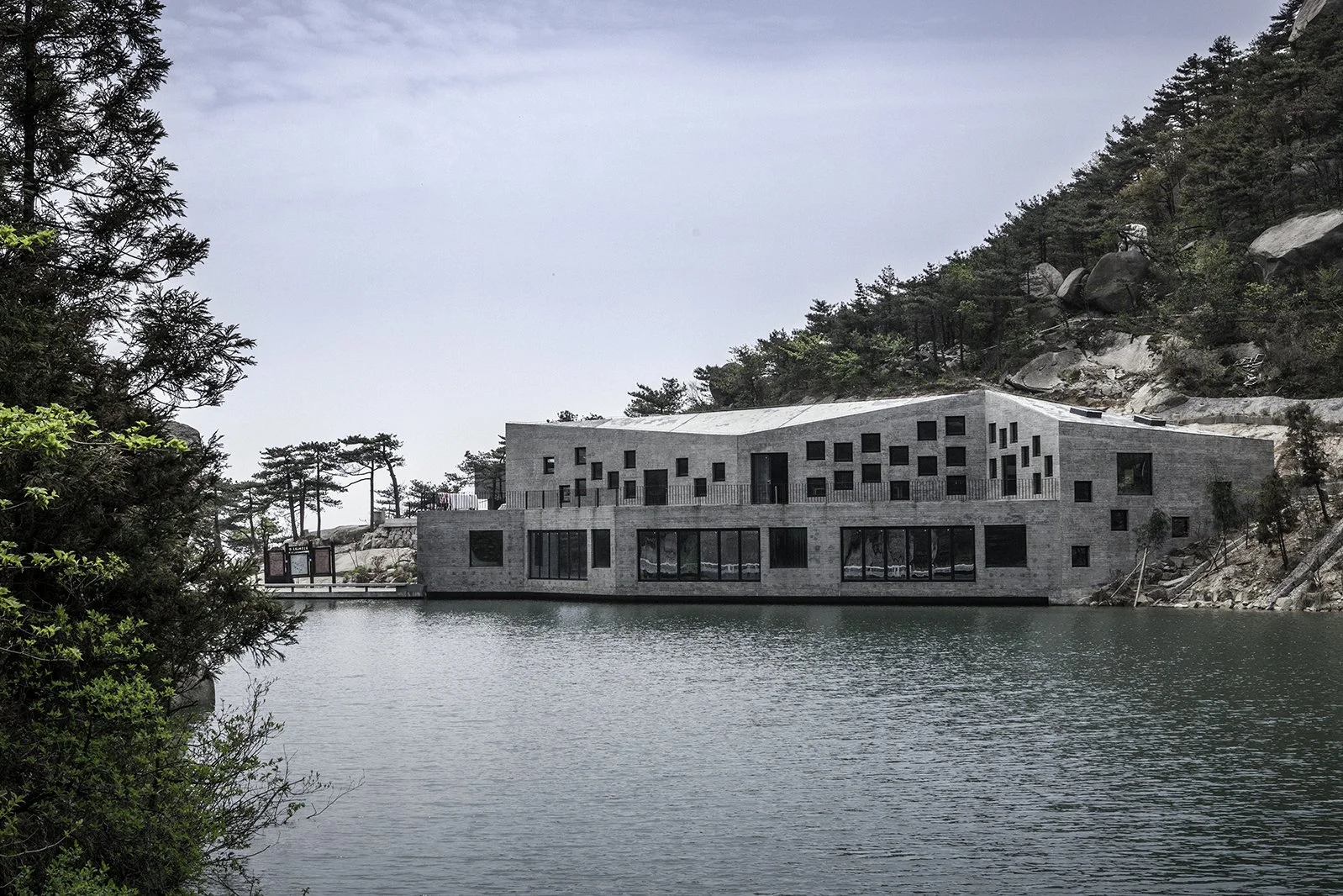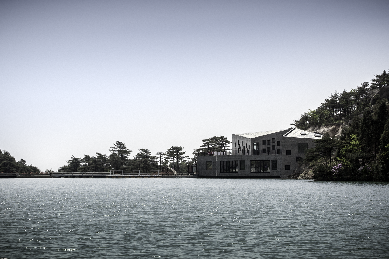 Located on a sacred Taoist mountain, this ecotourism infrastructure project benefits from an exceptional setting. In Taoist iconography, architecture is but one element of a complex composition, attesting to the human presence in an ideal context where the natural and the artificial form a coherent harmonious whole. Our project has sought to get closer to this philosophy of effacement. Thus, the building is seen as an extension of the existing topography. It bends and flexibly follows the accidental contours of the rock. A resting place for ramblers, the Tianzhushan refuge follows their pace as they enter through the first floor and continue their walk along a gentle ramp that leads to the water level. Two kinds of relationship with the surrounding nature are offered through the façades which at times frame the landscape and at other times project us into it through vast openings.