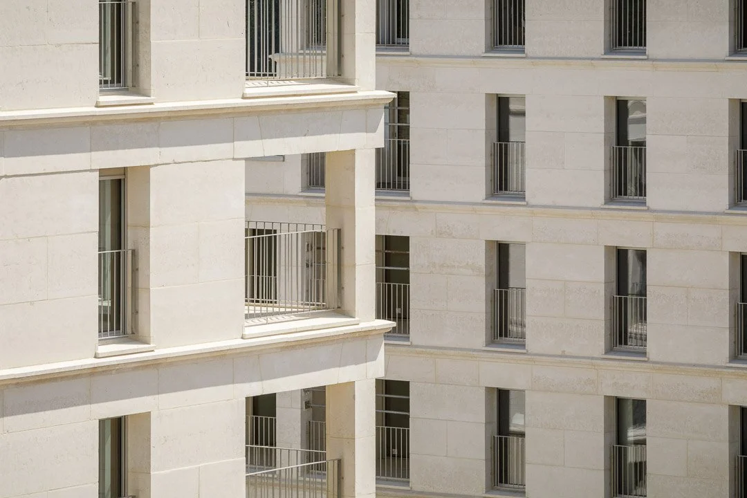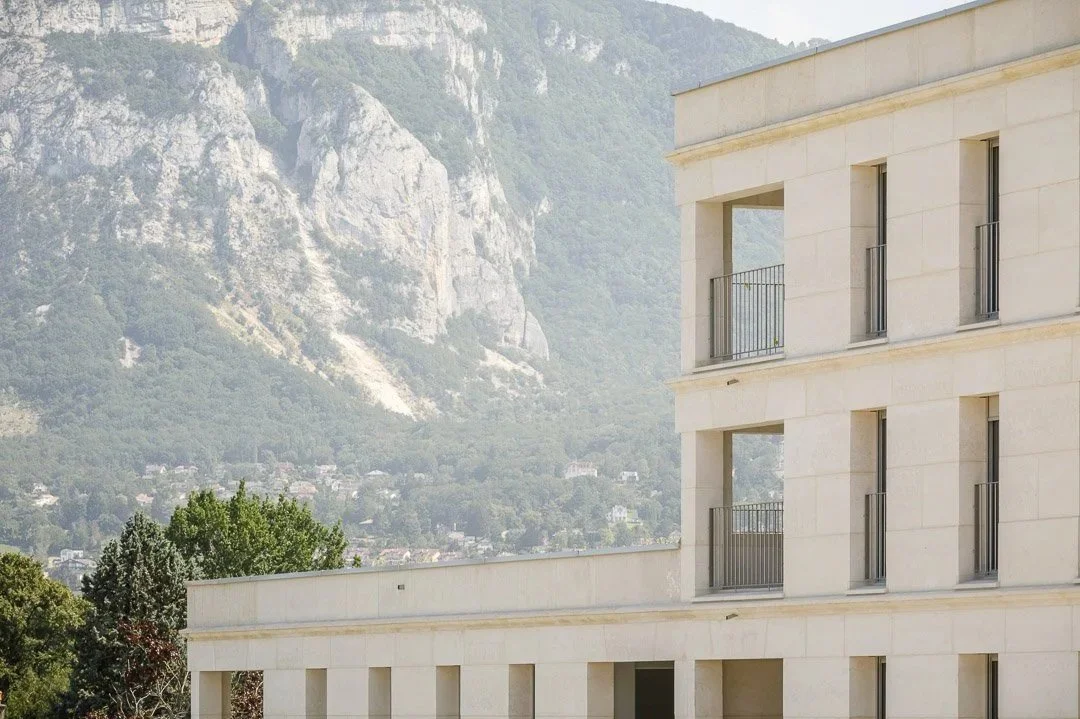The aim of this project is to demonstrate the economic, constructional, and technical feasibility of large-scale buildings made of massive stone structures. The strength of this concept lies in the development of a simple and rational architectural language which clearly links form and material without stylistic artifice. The plan comprises a series of 3 solid-stone rings which make up the main structure of the building, while providing the apartments with exceptional comfort of use by taking full advantage of thermal inertia. Experiment with the use of natural materials provides the opportunity to question the current production methods in light of environmental and climate issues.