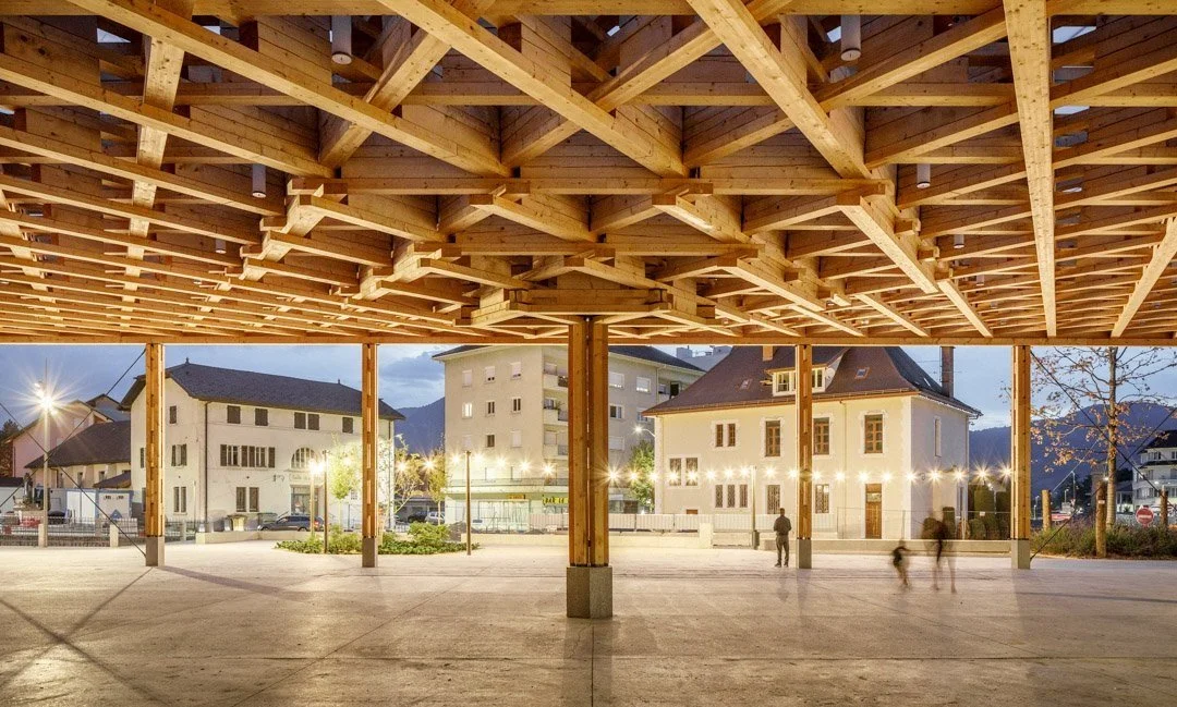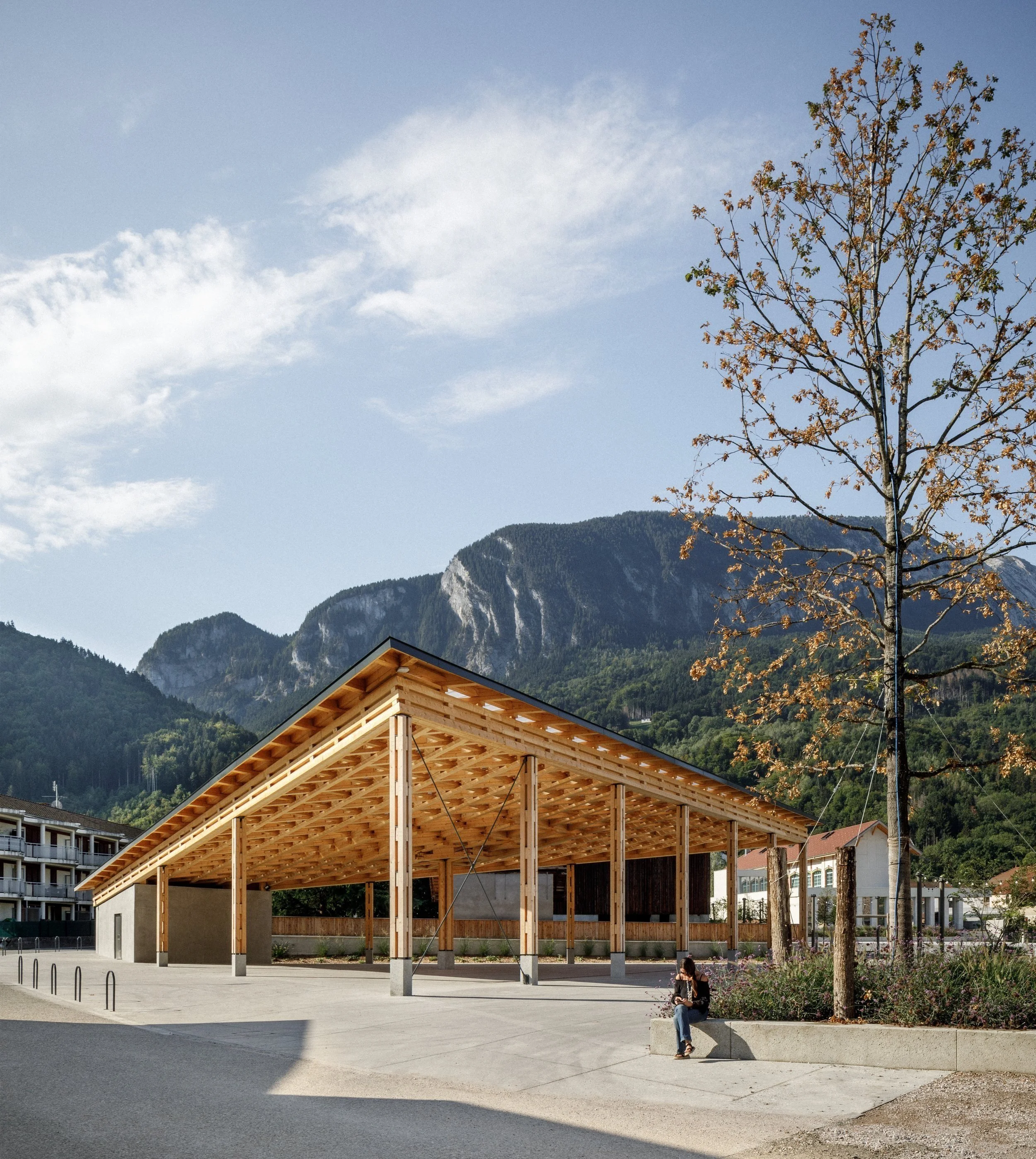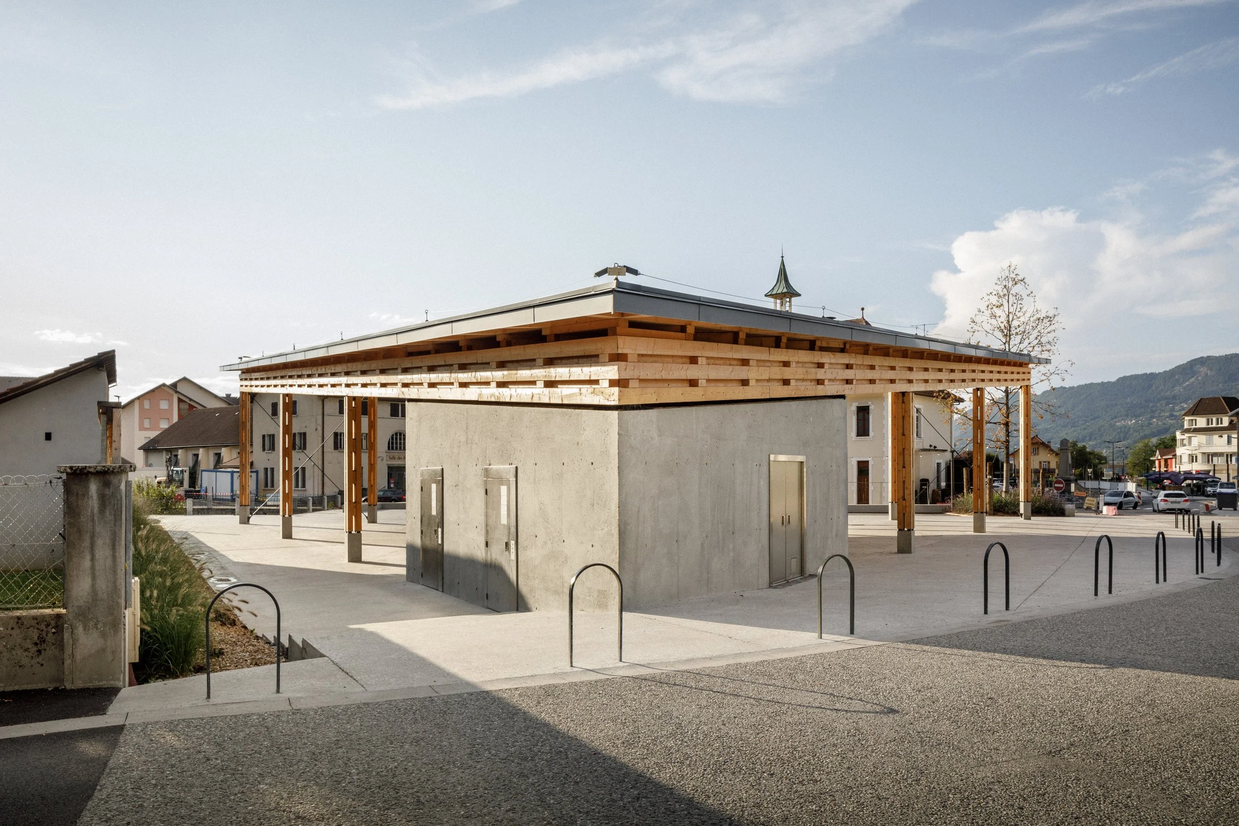 Location | Scionzier (74) France • Client | Scionzier municipality • Civil engineer | Arborescence • Type | Public place & market hall • Construction period | 2020-2023 • Surface Area | Market hall 680m2 ,Public Place 1ha • Cost | Market hall 800 000 €, Public Place 4.2 M € • photos | 11h45