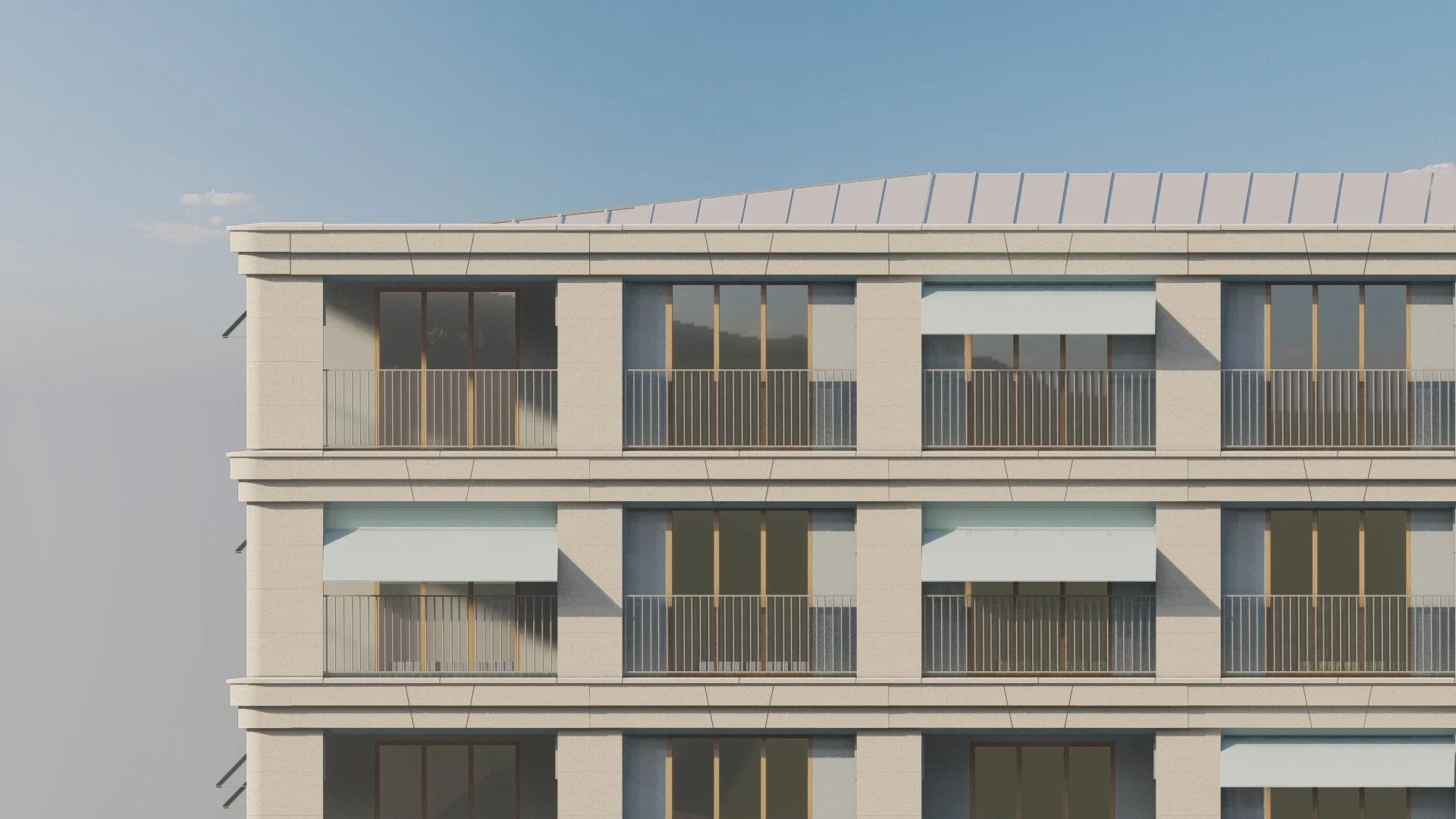 On a disused railway site in the heart of the city centre, the project is being developed as part of a new neighbourhood plan. The 110 homes occupy three separate buildings constructed from low carbon concrete and solid load-bearing stone. The three buildings are designed to be autonomous, but they maintain a neighbourly relationship with similarities and differences. The aim is to create a complex that is both coherent and rich in variation.