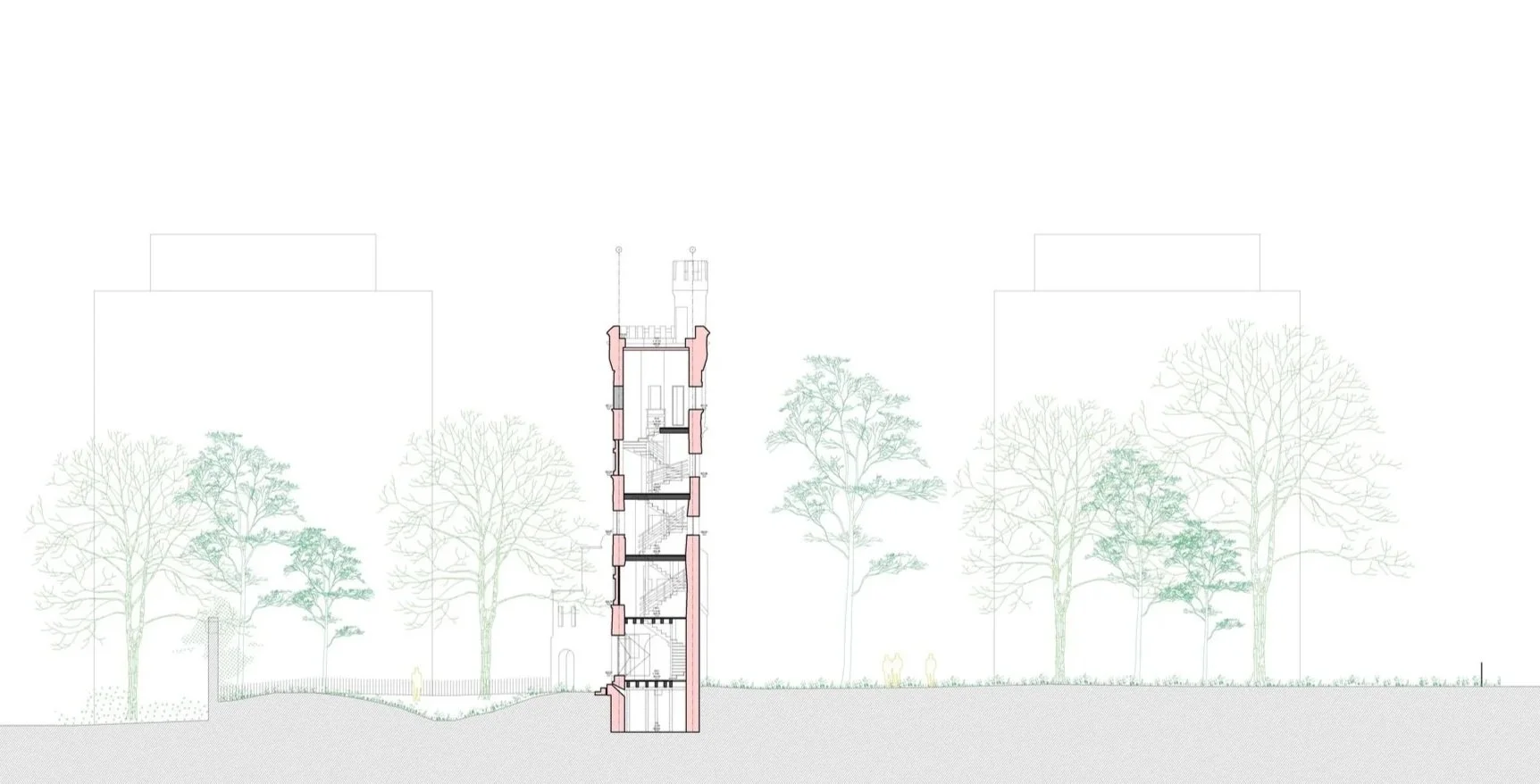 Location | Champel, (GE) Switzerland • Client | City of Geneva • Type | Restauration of a patrimonial tower from the XIX century • Project Period | 2022-2026 – under construction • Surface Area | 100 m² • Cost | €